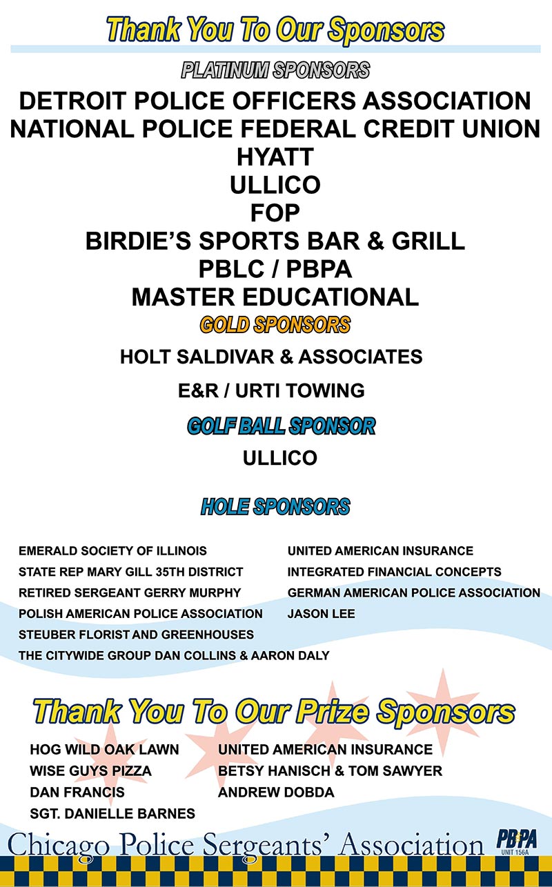 The Chicago Police Sergeants’ Association 63rd Annual Golf Outing is scheduled to be held on 11 August 2025 at Silver Lake Country Club in Orland Park. Please get your reservations in early. On your reservation form, please include a valid phone number and email in case we need to contact you. The golf outing is the only fundraising event for the Active-Duty Death Benefit. Without your support, this worthy benefit will not last. It’s a chance for all of us to get together and have some fun for an excellent cause. We have a Zelle account for payments, golf@chicagosergeants.org. Cost is $190, which includes golf, dinner, and refreshments. I hope to see everyone out there. Let’s try to get both courses filled this year! Thank you and stay safe.